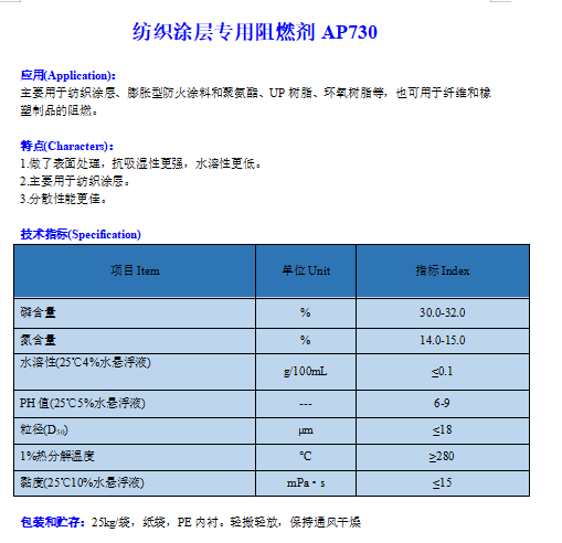 紡織品涂層專用阻燃劑AP730